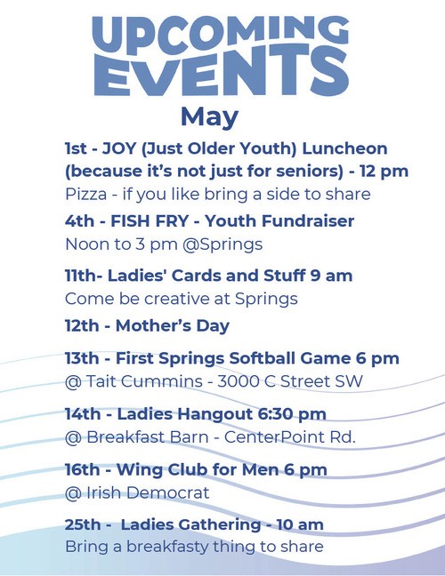 Welcome to the Springs News where you will find a monthly update to what is going in at Springs.