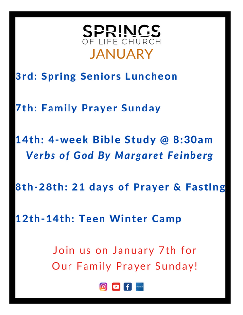 Join us during church service at 10am on January 7th for family prayer.