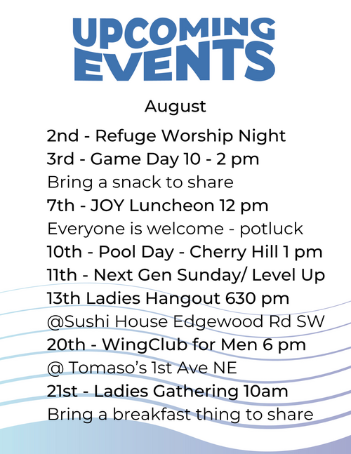 - Students are getting ready to head back to school at the end of the month. Pray for them to be a light at their school and to walk and love like Jesus.
